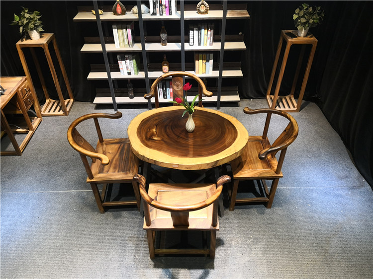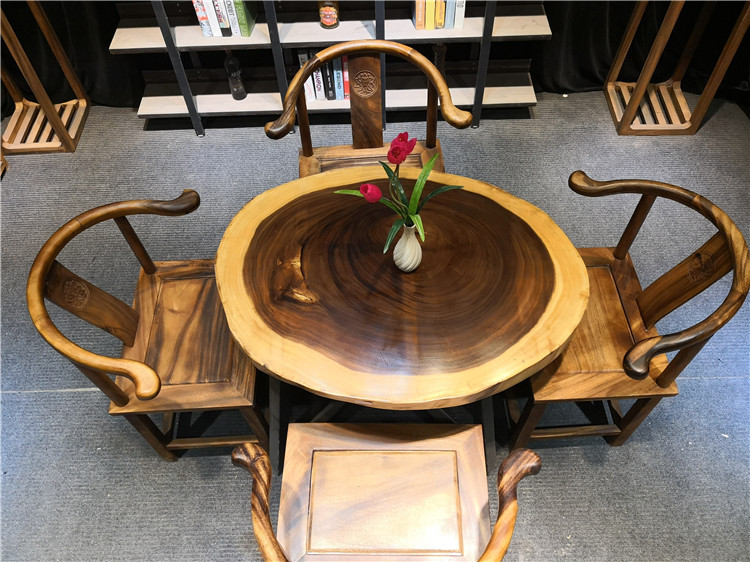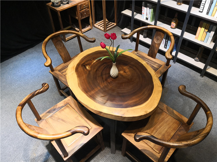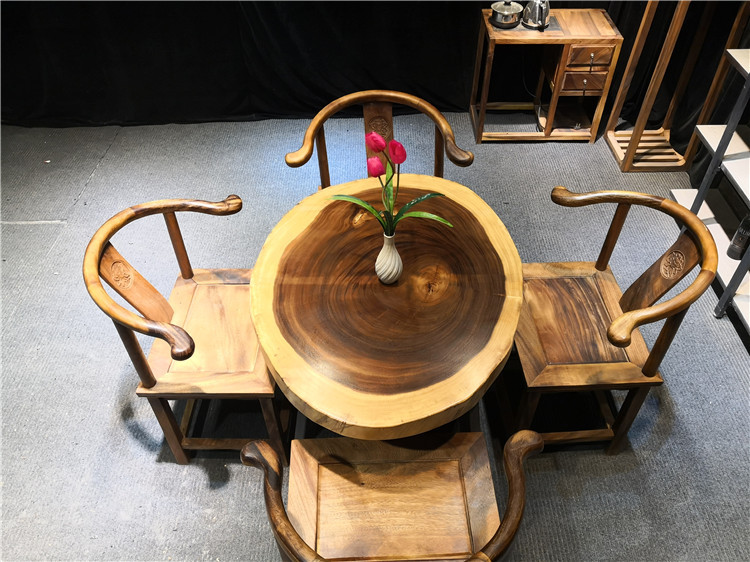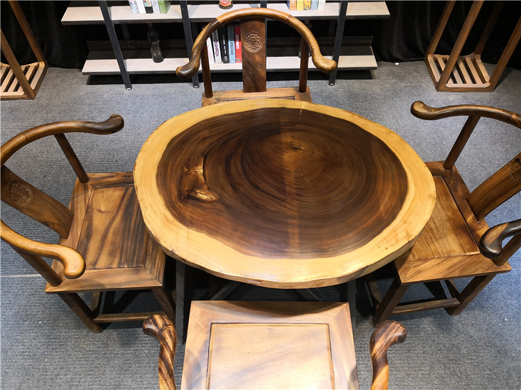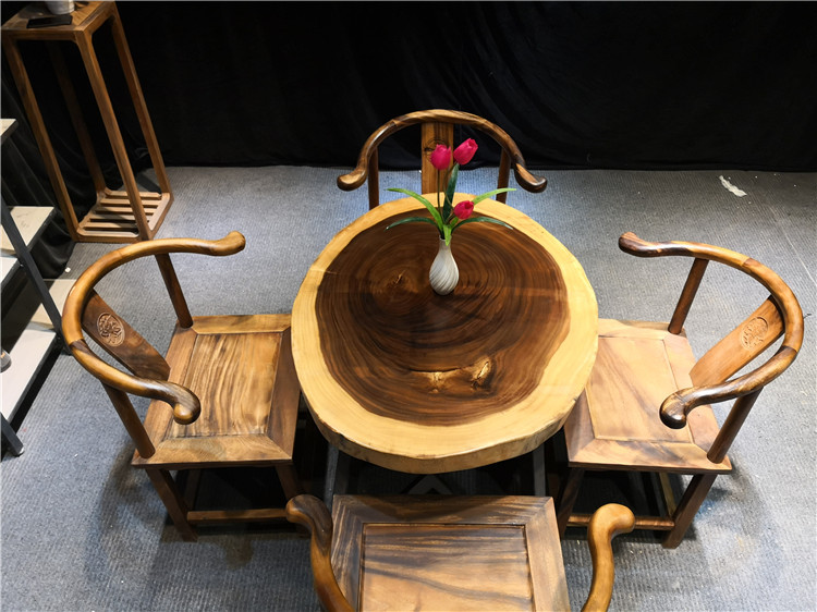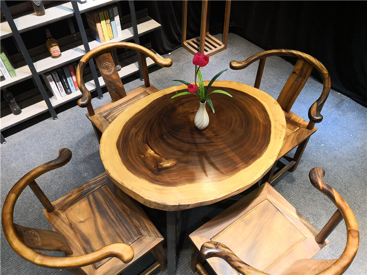 Bàn ghế mặt tròn nguyên tấm gỗ Cẩm Thị LU175